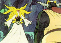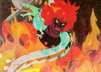 Ed ecco stagliarsi tra le fiamme la creatura invocata dalla regina: «Himica, ti pentirai di avermi invocato poiché io intendo impadronirmi del tuo regno!»