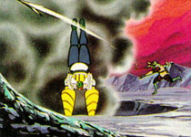 ...il mostro Haniwa gli lancia una scarica di raggi magnetici che lo scaraventano al suolo .Jeeg decide allora di risalire alla superficie...