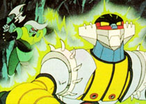 Toccando terra, Hiroshi, che non si è ancora trasformato nel robot ma è protetta da un semplice corazza, si trova improvvisamente di fronte un mostro.